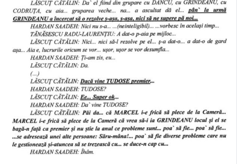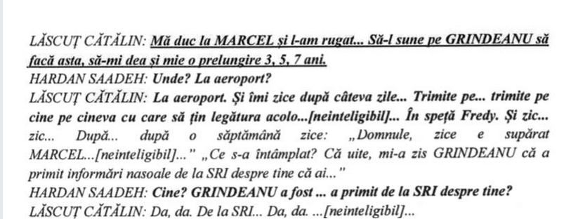 În stenograme sunt discuții despre influența asupra unor demnitari pentru a facilita contracte în Aeroportul Otopeni. Apare numele lui Sorin Grindeanu, Rareș Bogdan, Marcel Ciolacu și Mihai Tudose